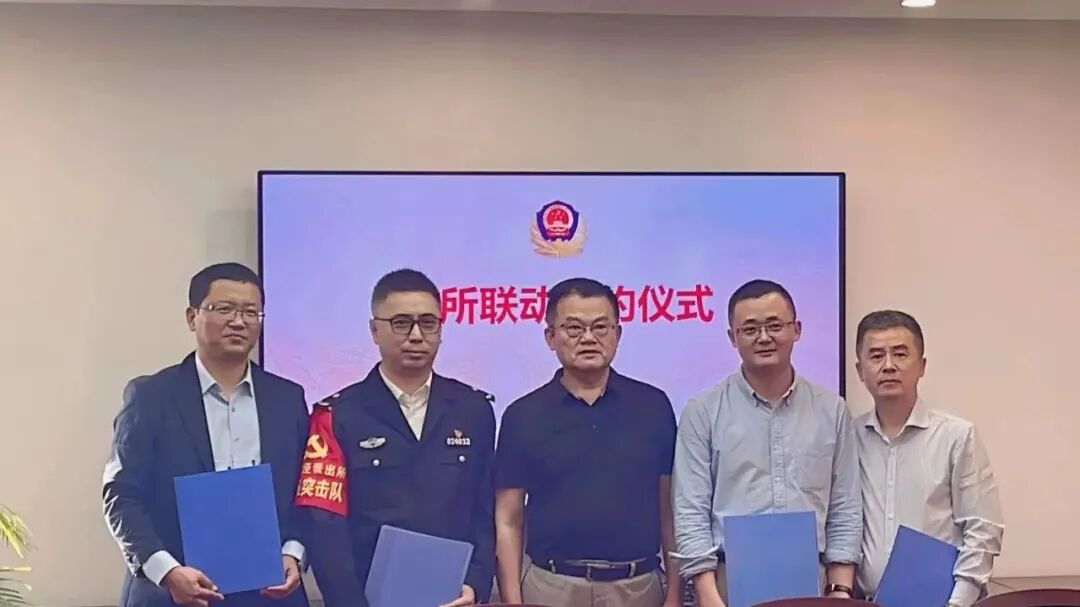 在全体参会人员的共同见证下,北新泾街道党工委副书记朱刚、北新泾派出所所长王伟、北新泾司法所所长高见、上海润申律所石彬主任及上海瑞富律所李征连律师共同签署了《“三所联动”共同开展矛盾纠纷排查化解工作协议》。
